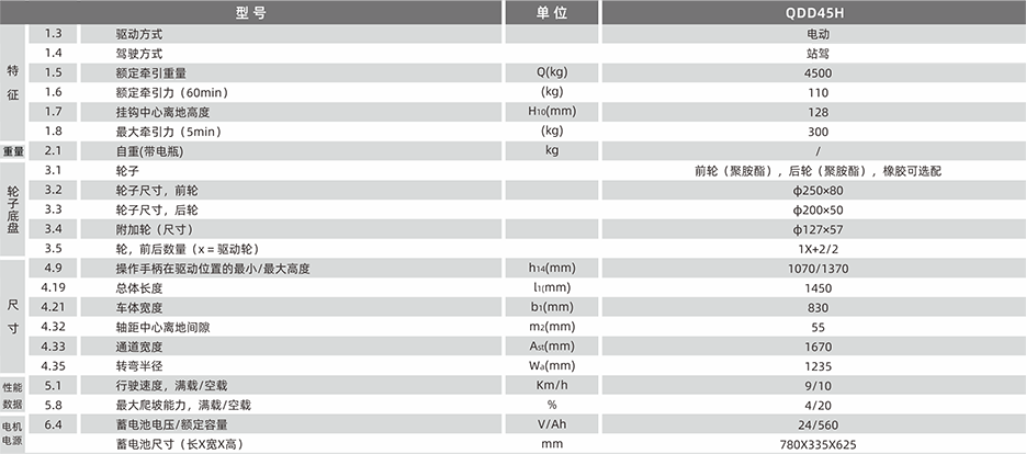 动力强劲,牵引4500KG时,可爬4%的坡度;